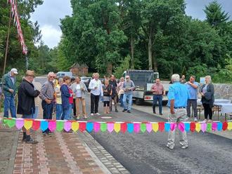 Bürgermeister Schröder bedankt sich herzlich bei allen unterstützenden Händen, insbesondere beim Mühlenverein. Er hofft, dass die Straße langlebig hält und unfallfrei bleibt.