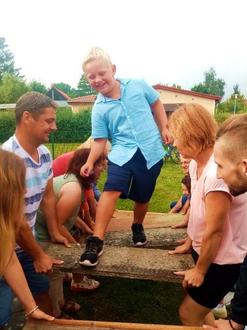Mit einem sehr passenden Liedtext von Gerhard Schöne wurde unsere kleine Schule eröffnet: „Alles muss klein beginnen, lass etwas Zeit verrinnen, es muss nur Kraft gewinnen und plötzlich ist es groß.“ Die ersten Schulkinder überquerten eine Brücke, die von ihren Eltern und Großeltern erbaut wurde. Begleitet und unterstützt von Eltern und Pädagogen sollen sie auch zukünftig ihren Weg selbstständig gehen dürfen. Empfangen von ihren Lernbegleitern erkundeten die Kinder im Anschluss das Schulgebäude.