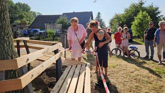 Am letzten Augusttag feierte Stoben fröhlich ein lang ersehntes Dorffest. Höhepunkt war die feierliche Freigabe der neuen Bank rund um die alte Eiche in der Dorfmitte. Da die alte Sitzbank das Zeitliche gesegnet hatte, war Ersatz vonnöten. Die Stobener schmiedeten einen Plan, kauften auf eigene Kosten das Material und packten an. Siehe da! Schöner als je zuvor lädt dieser lauschige Ort nun wieder zum Verweilen ein. Die ersten Radfahrer genossen bereits am Sonntag die Sonne und das Klackern der Eicheln auf dem Asphalt. Wir bedanken uns hiermit noch einmal bei allen Helfern, die uns unentgeltlich ihre Zeit und Arbeitsmittel zur Verfügung gestellt haben – vor allem bei Ingo Eggebrecht und Familie Rutscher aus Stoben. Ein Extra-Dank geht an alle Sponsoren, besonders Familie Gerloff aus Stoben/Halle/München. Und natürlich an Familie Uwe Labahn aus Stoben für ihren unermüdlichen Einsatz beim Planen, Bauen und Programmgestalten!
