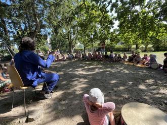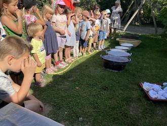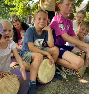 Schon seit vielen Jahren ist die Afrikawoche bei uns im Kinderhaus Himmelschlüsselchen ein fest eingeplantes Ritual der letzten Sommerferienwoche, in der wir zusammen mit allen Kindergarten - und Hortkindern gemeinsam singen, trommeln, kochen, batiken und ein afrikanisches Theater einstudieren, welches als Abschluss am Freitag in der Kirche aufgeführt wurde.