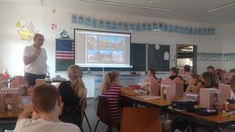 Anlässlich des 725-jährigen Jubiläums der Stadt Usedom besuchte Herr Voth die 4. Klasse der Grundschule Stadt Usedom. Am Montag ging es los. Herr Voth zeigte den staunenden Kindern, wie aus Papier das Usedomer Rathaus entstehen kann. Dann waren die Schüler an der Reihe. Sie legten mit Feuereifer los. Es wurde geschnitten, gefalzt, geklebt und gelacht. Am Ende des Tages standen 23 kleine Rathäuser auf den Tischen der Kinder.