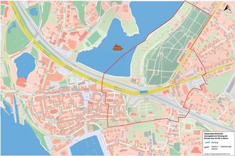 | 1. | Am Sonntag, den 19. Januar 2025, wird ab 08:00 Uhr, um den Bereich der Brücke über den Bahngleisen der Deutschen Bahn AG (Schweriner Damm, Bundesstraße 192) aufgrund der Abbruchsprengung des Nordzuges dieser Brücke, eine Sperrzone eingerichtet. |