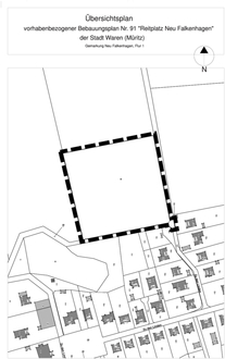 Die Stadtvertretung der Stadt Waren (Müritz) hat in ihrer Sitzung am 30. April 2025 den Aufstellungsbeschluss für den Bebauungsplan Nr. 91 „Reitplatz Neu Falkenhagen“ der Stadt Waren (Müritz) beschlossen.
