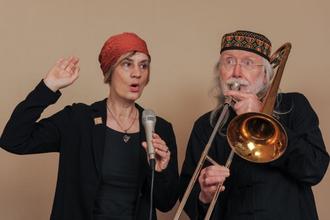 mit Silke Gonska (Gesang, Sprechtexte, Percussion) und Frieder W. Bergner (Konzept, Komposition, Posaune, Tuba, Gesang, Sprechtexte, Technik)