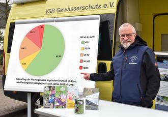 Der VSR-Gewässerschutz hat die Ergebnisse seiner Brunnenwasseranalysen im Kreis Mecklenburgische Seenplatte veröffentlicht. In den letzten Jahren wurden insgesamt 435 Wasserproben auf Belastungen mit Nitrat, Eisen und Bakterien untersucht. Die gemeinnützige Organisation war mit dem Labormobil in mehreren Städten aktiv, darunter in Neubrandenburg, Röbel/Müritz, Waren (Müritz) und Neustrelitz. Brunnenbesitzer hatten die Möglichkeit ihre Wasserproben direkt zum Labormobil zu bringen oder sie per Post an die Gewässerexperten zu senden.