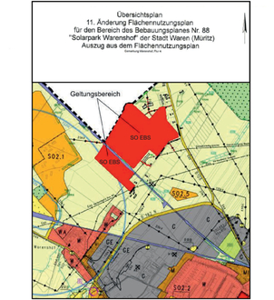 Die von der Stadtvertretung in der Sitzung am 5. März 2025 beschlossene 11. Änderung des Flächennutzungsplanes der Stadt Waren (Müritz) für den Bereich des Bebauungsplanes Nr. 88 „Solarpark Warenshof“ wurde gem. § 6 Abs. 1 des Baugesetzbuches (BauGB) in der Fassung der Bekanntmachung vom 3. November 2017 (BGBl. I S. 3634), zuletzt geändert durch Artikel 3 des Gesetzes vom 20. Dezember 2023 (BGBl. 2023 I Nr. 394) i.V.m. § 6 Nr. 3 des Gesetzes des Landes Mecklenburg-Vorpommern zur Ausführung des Baugesetzbuches (Baugesetzbuchausführungsgesetz – AG - BauGB M-V) vom 30. Januar 1998 (GVOBl. M-V S. 110), zuletzt geändert durch Artikel 2 des Gesetzes vom 19. März 2021 (GVOBl. M-V S. 270, ber. S. 1006) durch den Landkreis Mecklenburgische Seenplatte vom 11. Juni 2025, 1830/2025-502 mit Auflagen und Hinweisen genehmigt.