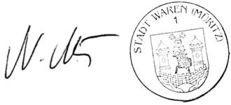 Gemäß § 5 Abs. 5 der Kommunalverfassung Mecklenburg-Vorpommern kann ein Verstoß gegen Verfahrens- und Formvorschriften, die in der Kommunalverfassung enthalten oder auf Grund derselben erlassen worden sind, nach Ablauf eines Jahres seit der öffentlichen Bekanntmachung nicht mehr geltend gemacht werden. Diese Einschränkung gilt nicht für die Verletzung von Anzeige-, Genehmigungs- und Bekanntmachungsvorschriften. Ein Verstoß ist schriftlich unter Bezeichnung der verletzten Vorschriften und der Tatsache, aus der sich der Verstoß ergeben soll, gegenüber der Stadt Waren (Müritz) geltend zu machen.