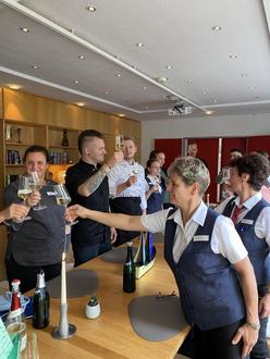 Unter diesem Motto hat sich das Hotel & Restaurant „Kleines Meer“ den Titel für den besten Beitrag im Festumzug anlässlich des Müritzfestes in diesem Jahr erobert und konnte den „Bunten Bollerwagen“ mit nach Hause nehmen. Vor einem Jahr selbst den Umzug angesehen, ist in Geschäftsführerin Kati Strasen die Idee geboren, selbst daran teilzunehmen, gerade auch im Hinblick auf das 25-jährige Firmenjubiläum. Gesagt, getan und somit wurde mit den Vorbereitungen begonnen. Die hervorragende Präsentation und die Freude am Umzug begeisterten das Publikum, was letztendlich bei der Abstimmung zu einem ersten Platz führte. Ein absoluter Höhepunkt war dennoch das eigens aufgenommene Lied „Willkommen am kleinen Meer“, was während des Umzuges in Dauerschleife lief, wie Frau Strasen selbst sagte. Frau Strasen ist unwahrscheinlich stolz auf ihr Team. Ob sie sich im nächsten Jahr wieder beteiligen, ist noch unklar. „Den Wanderpokal kann man verteidigen“, betonte der Bürgermeister abschließend und ist sich sicher, dass Frau Strasen gemeinsam mit ihrem Team einen super-Beitrag geleistet haben.