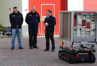 Ein weiteres Highlight des Tages war die offizielle Übergabe eines neuen Löschroboters. Das ferngesteuerte Roboter, wird künftig bei den Einsätzen der Freiwilligen Feuerwehr Waren (Müritz) wertvolle Unterstützung leisten. Der Landkreis Mecklenburgische Seenplatte hatte den Löschroboter mit 35.000 Euro unterstützt, die Stadt Waren (Müritz) trug die verbleibenden Kosten. „Er wird die Kameraden nicht ersetzen, aber entlasten“, betonte Wehrleiter Reimond Kamrath bei der Übergabe.