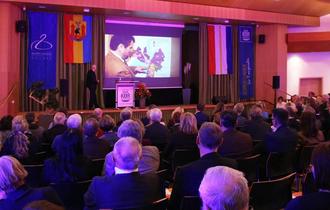 Bürgermeister Norbert Möller hielt eine Laudation zu Ehren von Günter Rhein, gefolgt von einer bewegenden Videobotschaft von Wegbegleiter des neuen Ehrenbürgers.