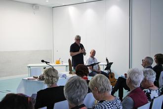 Musikalisch wurde der Nachmittag von Michael Hausburg begleitet, der mit seinen Gitarrenstücken und Liedern für eine stimmungsvolle Untermalung sorgte.