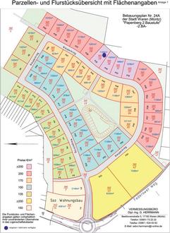 Das Baugrundstück befindet sich im Geltungsbereich des Bebauungsplanes Nr. 24 A - „Wohnbebauung Papenberg, 2. Baustufe“. Sämtliche Festsetzungen des rechtsverbindlichen Bebauungsplanes (Satzung und Begründung) können auf der Internetseite der Stadt Waren (Müritz) unter B-Plan 24a - Stadt Waren (Müritz) eingesehen werden. Das Grundstück wird vollständig erschlossen verkauft (anliegende Medienversorgung im Straßenraum: Strom, Trinkwasser, Gas, Glasfaserkabel und Abwasseranschlussschacht). Das Grundstück wird ohne Belastungen veräußert und kann vor Ort besichtigt werden.