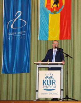 Unsere Stadt hat sich aber auch baulich im zurückliegenden Jahr weiterentwickelt. Dabei gehört es zu einer objektiven Realität, und das nicht nur in unserer Stadt, dass sich Bauvorhaben nicht mehr in der Fülle und der Geschwindigkeit, wie noch vor einigen Jahren, umsetzen lassen. Das hat grundsätzlich seine Ursachen in den eingangs erwähnten allgemein veränderten Wirtschaftsrahmenbedingungen und nicht, wie manchmal gedacht oder behauptet wird, in der Handlungs- und Arbeitsweise der handelnden Menschen. Die Stadt hat auch im zurückliegenden Jahr Vorhaben und Projekte umgesetzt, die unsere Lebensbedingungen nachhaltig verbessern werden. Dazu zähle ich u. a. die Fertigstellung des Bahnhofstunnels, die Sanierung der Rosa-Luxemburg-Straße, die Fertigstellung des Kreisverkehrs für das neue Wohngebiet hinter dem Papenberg, den Baubeginn mit dem 1. und 2.BA für das Wohngebiet B-Plan 24a, die Fertigstellung der Straße „Am Neuen Graben“, die Umsetzung des Kur- und Heilwaldes oder der Beginn der Erschließung des 2. BA des Gewerbegebietes Rothegrund. Wir dürfen nach wie vor in diesen Tagen mit den Gremien der Stadtvertretung einen städtischen Haushalt beraten, der natürlich auch geprägt ist von nicht einfacher werdenden Rahmenbedingungen, aber mit dem wir immer noch in unserer Stadt gestalten können und der es uns ermöglicht, freiwillige Leistungen für unsere Bürgerinnen und Bürger und für das öffentliche Leben hier in Waren (Müritz) bereit zu stellen, was in manch anderen Städten und Gemeinden bereits seit längerer Zeit nicht mehr möglich ist. Ich war gleich zu Beginn des Jahres am 3. Januar zum Jahresempfang des Seh- und Behindertenverbandes Müritz im Schmetterlingshaus. Das Schmetterlingshaus war wieder sehr gut besucht, viele Bürgerinnen und Bürger sind an diesem Tag zusammengekommen und konnten nochmals durch einen Jahresrückblick zurückblicken auf das Jahr 2023 und ihr Verbandleben, das wiederum interessant und vielschichtig war. Das war selbstredender Beweis stellvertretend für viele andere Vereine und Verbände in unserer Stadt für das grundsätzlich intakte Miteinander in unserer Stadt und das ist gut so und das soll auch in Zukunft so bleiben. Wir dürfen alle gewachsene Strukturen des Ehrenamtes breit aufgestellt in unserer Stadt nutzen, das ist nicht vom Himmel gefallen, das haben in erster Linie Bürgerinnen und Bürger für Bürgerinnen und Bürger aufgebaut und hierfür können wir auch in den heutigen Zeiten als Stadt unseren Beitrag leisten und das finde ich nach wie vor ganz wichtig und möchte mich deshalb auch an dieser Stelle bei allen Entscheidungsträgern recht herzlich dafür bedanken, dass sie uns als Stadtverwaltung dabei bisher und so hoffe ich auch zukünftig, dabei weiter unterstützen werden. Die Stadt wird mit dem Haushaltsplan 2024, vorbehaltlich des Beschlusses der Stadtvertretung, freiwillige Leistungen in einer Höhe von ca. 2,3 Mill. € zur Verfügung stellen. Mit dieser positiven Botschaft möchte ich meine Begrüßung schließen und freue mich nun gemeinsam mit Ihnen auf unser, so hoffe ich auch für Sie, abwechslungsreiches Programm unseres diesjährigen Neujahrsempfanges.“