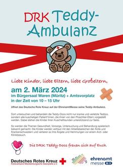 Zu sehen sind zum Beispiel Vereine aus dem Natur- und Umweltschutz, Blaulichtorganisationen, Selbsthilfegruppen, Sportvereine, Rettungshundestaffel, das Finanzministerium und weitere Dienstleister für das Ehrenamt, sowie Bereiche aus der Seniorenarbeit und viele weitere soziale Vereine und Initiativen. Ein Höhepunkt während der EhrenamtMesse ist unsere DRK-Teddyambulanz. Die Teddy-Docs untersuchen und behandeln nicht nur kranke und verletzte Teddys, sondern alle kuscheligen Patient*innen, die ihnen von den Plüschtier-Eltern vorgestellt werden. Dabei stehen die Kinder ihren Kuschelfreunden unterstützend zur Seite. So werden die Themen Gesundheit, Vorsorge, Untersuchung und Behandlung spielerisch bekannt gemacht. Die Kinder werden vertraut mit den Arbeitsbereichen der Ärzte und Krankenschwestern und verlieren so ihre Ängste und Hemmungen vor einem Arzt- oder Klinikbesuch. Die EhrenamtMessen M-V werden durch das Deutsche Rote Kreuz organisiert und Ministerpräsidentin Frau Manuela Schwesig, lässt es sich nicht nehmen auch in diesem Jahr die Schirmherrschaft zu übernehmen.