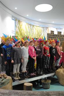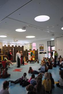 Zum Ende der Woche organisierte das Hortzentrum im Schmetterlingshaus ein Abschlussfest. Stolz präsentierten die Kinder ihr erlerntes Wissen im Rahmen eines kleinen Programms aus Gesang und Dialogen. Dabei kamen auch die gebastelten Schilde und Schwerter zum Einsatz. Der Ohrwurm „we will sing in english“ wird alle sicherlich noch ein paar Wochen begleiten.