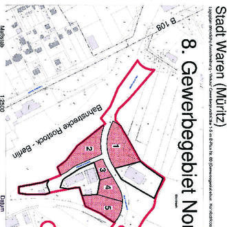 Die Stadt Waren (Müritz) schreibt Gewerbebaugrundstücke in Waren (Müritz) im „Gewerbegebiet Bahnbetriebsgelände" gelegen an der lesenbahnstraat, öffentlich zum Verkauf aus: