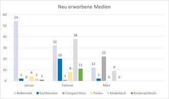 Allgemeine Übersicht über die Ausleihzahlen, neu erworbene Medien sowie Neuanmeldungen von Nutzern