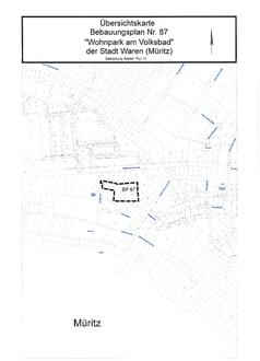 Ziel des Bebauungsplanes Nr. 87 „Wohnpark am Volksbad“ ist die Nachverdichtung des Gebietes, um weiteren stark nachgefragten Wohnraum zu schaffen. Der Aufstellungsbeschluss erfolgte am 20.01.2022 durch die Stadtvertretung der Stadt Waren (Müritz).