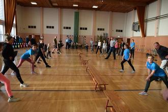 Es begann mit einer Erwärmung, bei der auf unterschiedlichster Weise die verschiedenen Muskelgruppen des Körpers gedehnt wurden, um eine gute Vorbereitung auf die einzelnen Disziplinen zu haben.
