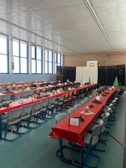 Viele Eltern hatten mit viel Liebe Kuchen, Torten und Muffins gebacken, sodass nach dem Programm ein reichhaltiges Kuchenbuffet zur Verfügung stand. Bei Kaffee, Saft und einer Auswahl an Köstlichkeiten konnten sich die Besucher stärken. Anschließend konnte der kleine Weihnachtsmarkt auf dem Schulhof besucht werden. Dieser wurde von der Gemeinde Groß Plasten organisiert und bot eine Vielzahl an Ständen, an denen Weihnachtsbäume, Adventsgestecke, Weihnachtsdekoration, Kinderbücher sowie Eintrittskarten für den Karneval und vieles mehr erworben werden konnten.