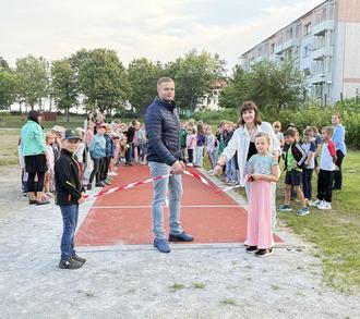 Da der Grundschule bislang keine geeigneten Sportanlagen zur Verfügung standen, beschloss die Gemeinde Groß Plasten den Bau einer 60 m Laufbahn mit kombinierter Weitsprunggrube auf dem Schulhof, um einen ordnungsgemäßen Schulsport zu gewährleisten. Die Bauarbeiten wurden von der Rostocker Garten-Landschafts- und Sportplatzbau GmbH durchgeführt und starteten Mitte Juni. Der Boden wurde abgetragen, Drainageleitungen verlegt, eine Filterschicht und Schottermaterial eingebaut. Eine Tragschicht wurde hergestellt und abschließend der Kunststoffbelag aufgetragen. Die Laufbahn verfügt über zwei Laufbahnen à 1,22 m Breite. Die Weitsprunggrube, mit den Maßen 8 x 4 m, wurde ausgekoffert, verdichtet und es wurde eine Sprunggrubeneinfassung mit einer Gummiabdeckung hergestellt. Abschließend wurde die Grube verfüllt. Auf Grund des Wetters konnten die Markierungsarbeiten erst in den Sommerferien erfolgen. Die Finanzierung setzte sich aus einer Landesförderung und aus einem Eigenanteil der Gemeinde zusammen. Dieser wichtige Meilenstein bot Anlass für eine offizielle Einweihung am 10.09.25 durch Herrn Petzke, Bürgermeister der Gemeinde Groß Plasten. Erstmalig können die Schüler der Grundschule auf einer richtigen Laufbahn mit Kunststoffdecke Anlauf nehmen. Nun herrschen optimale Bedingungen für den Sportunterricht.