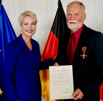 „Diese hohe Auszeichnung ist Ausdruck der Anerkennung für Leistungen, die weit über das normale Maß hinausgehen und über einen langen Zeitraum erbracht wurden. Mit ihr werden Menschen geehrt, die etwas Herausragendes geleistet haben, die sich ehrenamtlich, mit viel Idealismus und Einsatz einer Aufgabe widmen, die der Gemeinschaft, die uns allen zugutekommt“, betonte Ministerpräsidentin Manuela Schwesig, die die Auszeichnung im Namen des Bundespräsidenten überreichte.