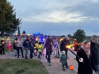 Die FFW Kargow begleitete den Fackelumzug durch das Dorf.