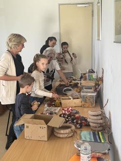 Frau Wachholz bastelte mit Groß und Klein so hübsche Gestecke und Türanhänger.
