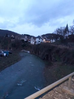Der Ahr sieht heute wieder friedlich aus. Aber Arbeiten, die im Zusammenhang mit der Flutkatastrophe stehen, sind noch immer nicht abgeschlossen.