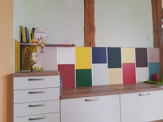 Die neue geräumige Küche wird als Büfettstrecke und zum Anrichten von Speisen genutzt. So können sich die Kinder selbstständig ihre Speisen auswählen. Sie erlernen leicht den bewussten und gesunden Umgang mit Lebensmitteln. Darüber hinaus entdecken sie sogar bisher unbekannte Geschmacksrichtungen. Selbstgemachtes wird einfach gern probiert.