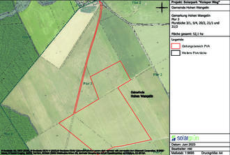 Das Plangebiet wurde erweitert und umfasst nun insgesamt ca. 52,1 Hektar. Ergänzend hinzu kommen teilweise die Flurstücke 21/1, 21/2 und 3/1, der Flur 3, Gemarkung Hohen Wangelin. Ursprünglich waren mit Aufstellungsbeschluss vom 01.03.2022 nur die Teilflächen der Flurstücke 20/2 und 5/4 in der Flur 3, Gemarkung Hohen Wangelin in den Bebauungsplan aufgenommen worden. Der damals beschlossene Geltungsbereich konnte nicht durch eine öffentliche Straße erschlossen werden. Der Vorhabenträger hat sich daher die Zufahrt nun über ein Privatgrundstück gesichert und zusätzliche Flächen des Wegeeigentümers mit in das bestehende Projekt integriert. Der Geltungsbereich des B-Planes wurde dahingehend angepasst.