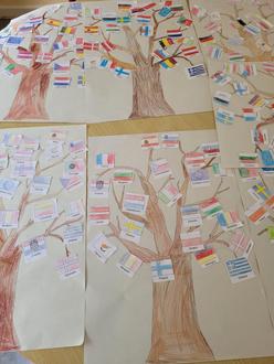 In den Klassen 1-4 wurden unterschiedliche Angebote dazu durchgeführt. Es gab eine Länderreise, im Anschluss folgte ein Länderquiz. Es wurden Fahnen aus den verschiedenen Ländern gestaltet und hinterher als Plakat im Hausflur dargeboten. Die Schülerinnen und Schüler lernten die Länder kennen und die dazu gehörigen Kulturen, sowie Sehenswürdigkeiten und typische Gerichte. Wir schauten uns einen Film über Europa an und lernten, was das besondere an der „Europäischen Union“ ist. Zum Abschluss trafen sich alle Schülerinnen und Schüler der Schule auf dem Schulhof, um den Projekttag mit einem griechischen Tanz (Sirtaki) zu beenden.