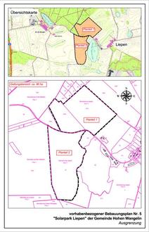 Der räumliche Geltungsbereich des Bebauungsplans ist der als Anlage beigefügten Übersichtskarte zu entnehmen. Er beläuft sich auf eine Größe von etwa 86,0 ha und umfasst Teilflächen der Flurstücke 21, 24/5 und 27/2 der Flur 1 in der Gemarkung Liepen.