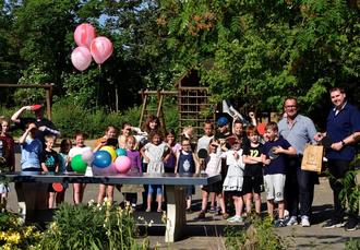 Mit großer Freude übergab Vorstand Sebastian Schade die beiden, fast pünktlich zum Kindertag, gelieferten Platten an Schulleiter Tino Hartwig und somit der Schule und den erwartungsvollen Kindern.