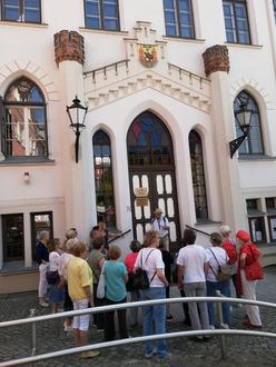 Im Rathaus durften wir in die Arestzelle für die „Ungehorsamen“ schauen und im Innenhof den kaum bekannten gemütlichen Biergarten bestaunen. Zum Bier trinken blieb leider keine Zeit, denn der Tisch war im Hotel am Tiefwarensee gedeckt, wo leckere Kuchen und köstlicher Kaffee serviert wurde.