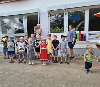 Wochen zuvor beschäftigten wir uns mit dem Projekt „Berufe“. Die Krippenkinder zeigten eine Modenschau zu diesem Thema und die größeren Kinder spielten Szenen aus dem Berufsleben nach und alle Eltern und Gäste sollten dann den Beruf erraten. Mit viel Freude und Leidenschaft waren die Kinder dabei. Mit Musik und Tanz wurde das Programm abgerundet. Das Sommerfest ist auch gleichzeitig eine Verabschiedung der Vorschulkinder. Und wie in jedem Jahr mit einem weinenden und lachenden Auge. Mit Bratwurst, Broten und Salaten wurde sich dann ordentlich gestärkt. Vielen Dank dafür an alle Eltern. Danach folgten Feuerwehrfahrten, Wasser spritzen, Kinder schminken Experimente usw. Zu unseren Gästen zählte auch der Feuerwehrförderverein Hohen Wangelin. Sie hatten eine riesengroße Überraschung für uns. Sie übergaben uns einen Scheck im Wert von 150€. Alle Kinder und Erzieher bedankten sich herzlich für diese tolle Spende. Gemeinsam überlegen wir dann, was wir uns davon anschaffen wollen. Ein Dankeschön auch an Familie Brandstäter, Frau Ströbele und Frau Holz, die uns fahrtechnisch beim Schwimmkurs unterstützten. Frau Endrulat und ihre Tochter Finja fertigten uns einen zauberhaften Tischschmuck für unsere Tisch an. Vielen Dank auch dafür. Aber auch die zahlreichen Bänke und Tische aus Moltzow durften nicht fehlen. Alles lief problemlos ab. Vielen Dank an die Gemeindearbeiter. Es erwies sich wieder mal, wie wichtig eine gute Vernetzung und Zusammenarbeit aller ist. Es war für uns alle ein gelungenes Fest.