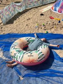 Im Mittelpunkt stand in diesem Jahr auch die Verabschiedung unserer Kollegin Frau Pitschmann in den Ruhestand. Nicht ohne ein wenig Spaß - ehe sie sich`s versah, durfte sie in einen wunderschönen geringelten Badeanzug schlüpfen, wurde mit allerlei Planschutensilien ausgestattet, wie Tauchbrille und Schwimmring! So konnte die Reise „zu neuen Ufern“ beginnen. Mit einigen Spielen und Aufgaben, in denen sowohl Kinder, Kollegen als auch Eltern miteinbezogen wurden, erkämpfte sie sich ihren wohlverdienten Ruhestands-Schatz.
