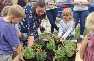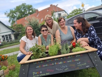 Durch die Vorschulkinder gab es aber auch eine Überraschung für die Erzieherinnen. Noch gut versteckt stand in unserem Garten ein selbstgebautes und von den Kindern beschriebenes Hochbeet. Jedes Kind bepflanzte für uns Erzieherinnen dieses wundervolle Geschenk. Wir waren sehr gerührt und sind von ganzem Herzen dankbar.