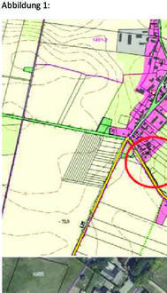 im Süden die „Dorfstraße-L 25“ mit anschließendem Acker