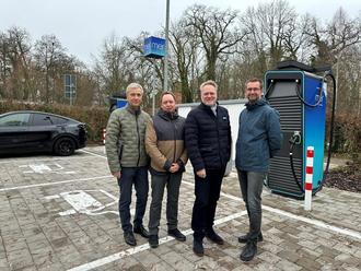 Bei der offiziellen Einweihung der Ladesäulen Mitte Dezember, bedankte sich Ulrich Setzmann von der Mer Germany GmbH bei Bürgermeister Henry Tesch und Bauamtsleiter Thomas Reggentin für die unkomplizierte Zusammenarbeit und zuverlässige sowie zügige Umsetzung des Vorhabens.