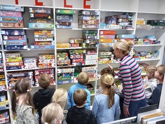 Gemeinsam entdeckten wir, dass eine Bibliothek weit mehr bietet als nur Bücher. Die Kinder staunten, als sie erfuhren, dass man dort auch Filme, Gesellschaftsspiele, Tonies, Hörbücher und Zeitschriften ausleihen kann.
