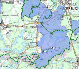 Das EU-Vogelschutzgebiet (SPA-Gebiet) „Müritz-Seenland und Neustrelitzer Kleinseenplatte“ erstreckt sich von Waren/Müritz im Norden über Wesenberg bis hin zur Landesgrenze nach Brandenburg.