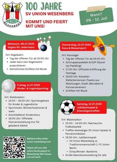 Der SV Union Wesenberg wird in diesem Jahr an mehreren Veranstaltungstagen und mit einem vielfältigen Programm ein stolzes Jubiläum feiern - 100 Jahre Wesenberger Vereinssport.
