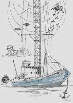 Illustration: Schiff „Ross Revenge“ Uwe Gloede, Maler und Zeichner, Insel Poel