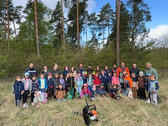 Die Schülerinnen und Schüler der Grundschule Mirow sowie Partner und Unterstützer der Pflanzaktion im Schulwald.