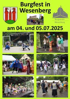 Das 29. Burgfest in Wesenberg findet am 04. und 05.07.2025 in Wesenberg statt, was wie jedes Jahr mit viel Zeit und Liebe von uns für die Wesenberger und ihre Gäste organisiert wurde. Den Auftakt macht am Freitag wie gewohnt der Nachtwächterrundgang, anschließend unterhält Volker Brock & Reinard Gust die Gäste mit Swing auf dem Burghof. Ab 21:00 Uhr steigt auf dem Festplatz unterhalb der Burg die Freitags-Sause mit der "Klangkultur M-V".