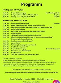Wir freuen uns mit Euch ein schönes Burgfest zu feiern.