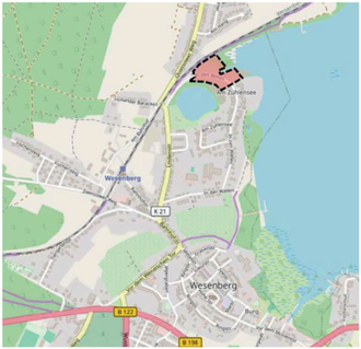 Der räumliche Geltungsbereich der 3. vorhabenbezogenen Änderung des Bebauungsplans umfasst die Gemarkung Wesenberg Flur 28 Flurstücke 4/25, 4/26, 4/27, 4/28, 4/29, 4/30, 4/ 31, 4/32, 4/33, 4/35, 4/36, 5/6, 5/7, 5/8, 5/9, 5/10, 5/11, 5/12, 5/13, 56 und teilw. 4/37, 5/21, 55.