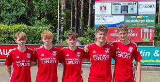 Hierzu zählen u.a. Jan-Eric Lindner, Jonas Baumann, Leon Rosner, Julius Ott, Friedrich Boenigk (Foto v.l.n.r.) und Ole Antwerpen, welche den Schritt in den Männerbereich wagen.