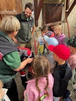 Auch die Schutzkleidung und Ausrüstung der Forstmitarbeiter wurde vorgestellt. Die Kinder lernten, warum Helme, Schnittschutzhosen, Warnwesten und feste Schuhe im Wald so wichtig sind - sie schützen vor Verletzungen und sorgen für Sicherheit bei der täglichen Arbeit im Gelände.